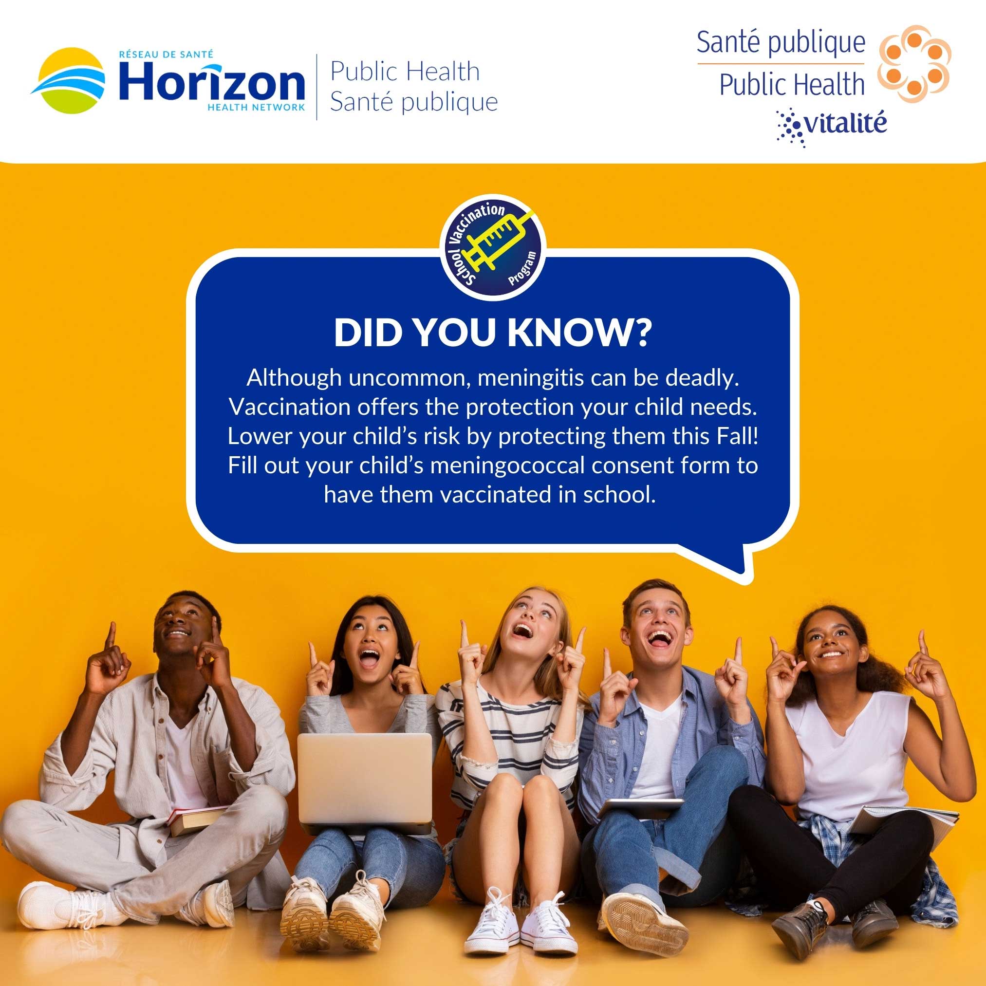 Public Health nurses will be coming to your school on December 2, 2025 to offer all grade 9 students their meningitis vaccine. Information pamphlets for the vaccines offered are available...
